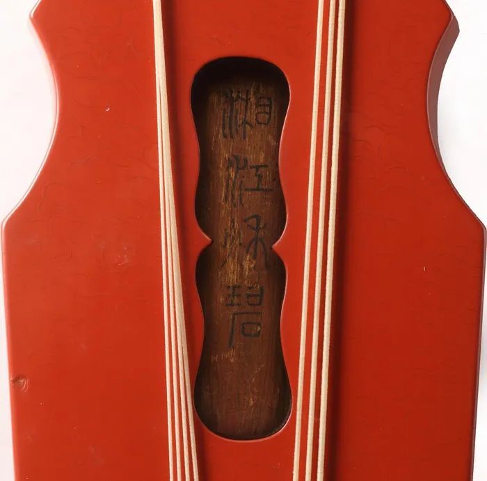 龙池、 雁足间二寸许椭圆音孔纳音处墨书铭:“乾隆十年秋补桐书屋制,尺度一依软定律吕正义”。钤“比德”朱印。