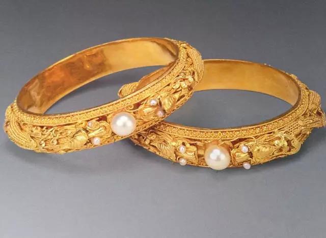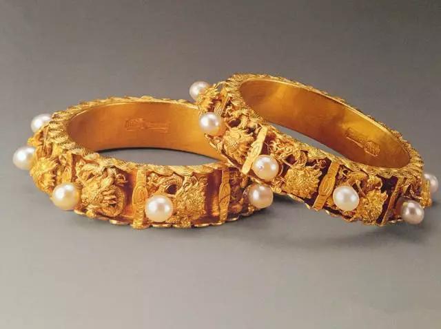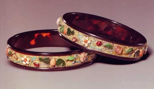 手镯的选材囊括了金银、珊瑚、翡翠、玳瑁、珍珠、白玉、碧玺、伽南香等多种材质。