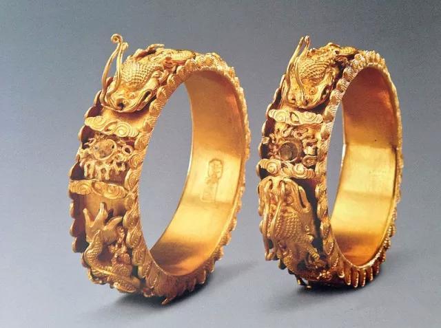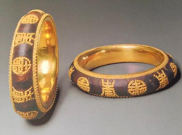 手镯的纹饰题材一如其他清宫首饰一样,言必有意,意必吉祥,多是蝙蝠、佛手、万字纹样,期盼福寿康宁。