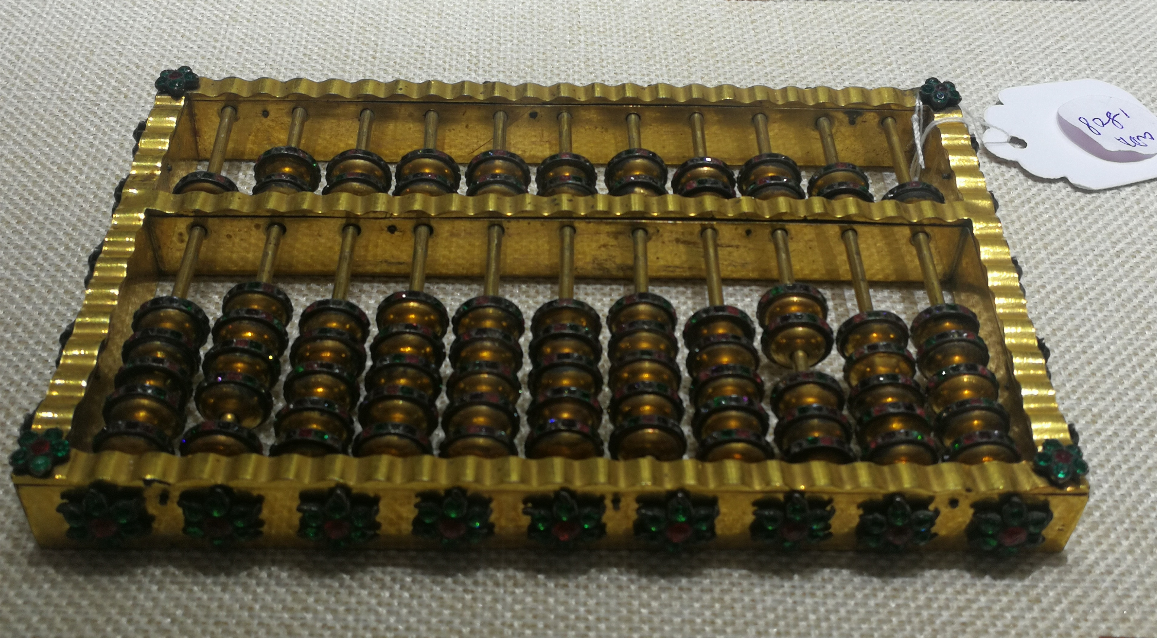 铜鎏金嵌料石算盘15x9.7x1.6cm