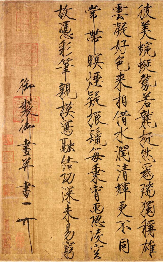赵佶 瘦金体《祥龙石图》题记,绢本 ,绢布53.9x127厘米,北京故宫博物院藏