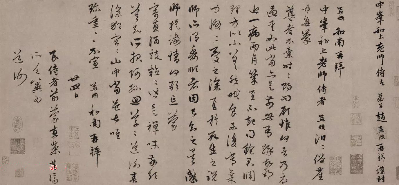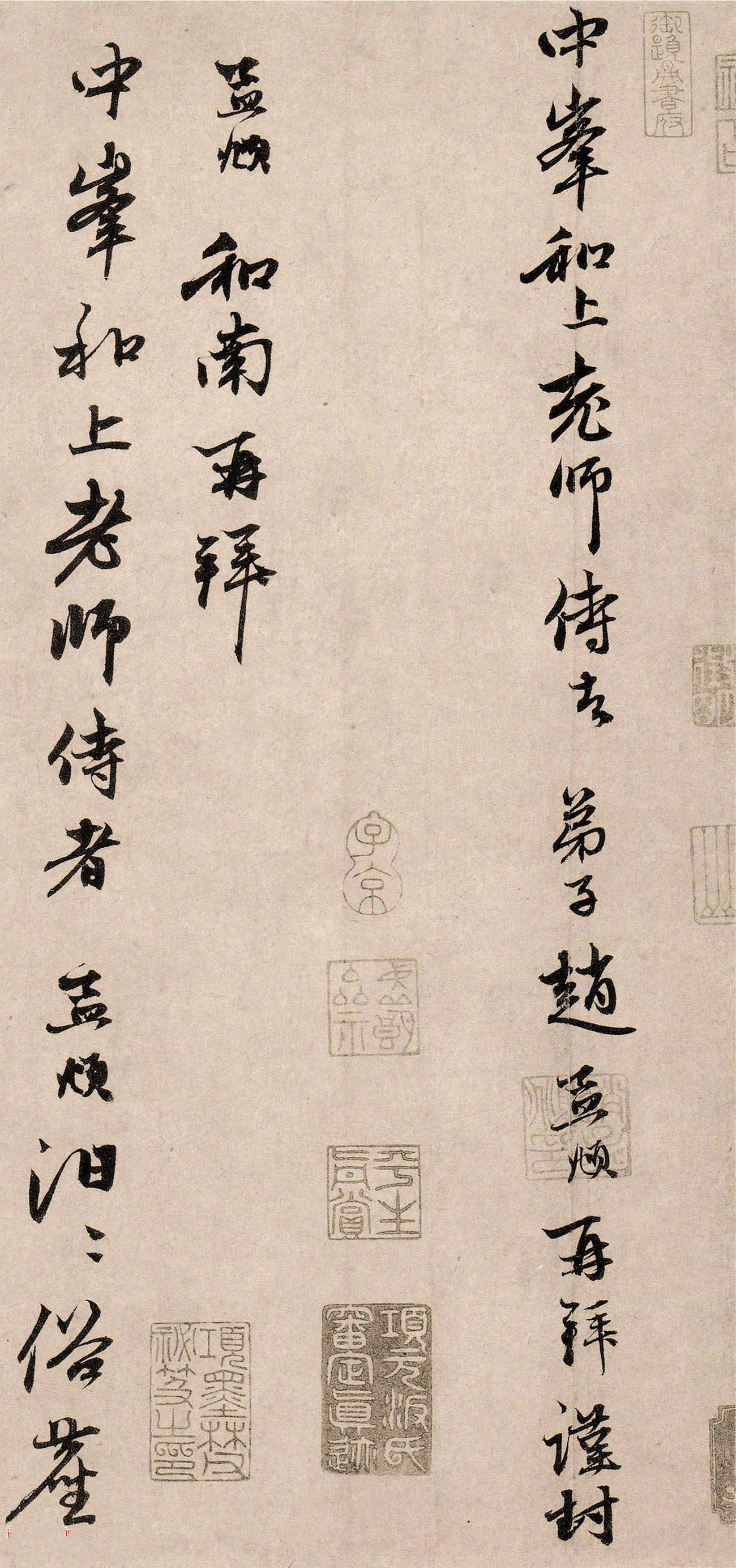 赵孟頫行草书《俗尘帖》(每蒙尊者帖),纸本,凡十九行,每行字数不一,计187字。台北故宫博物院藏。