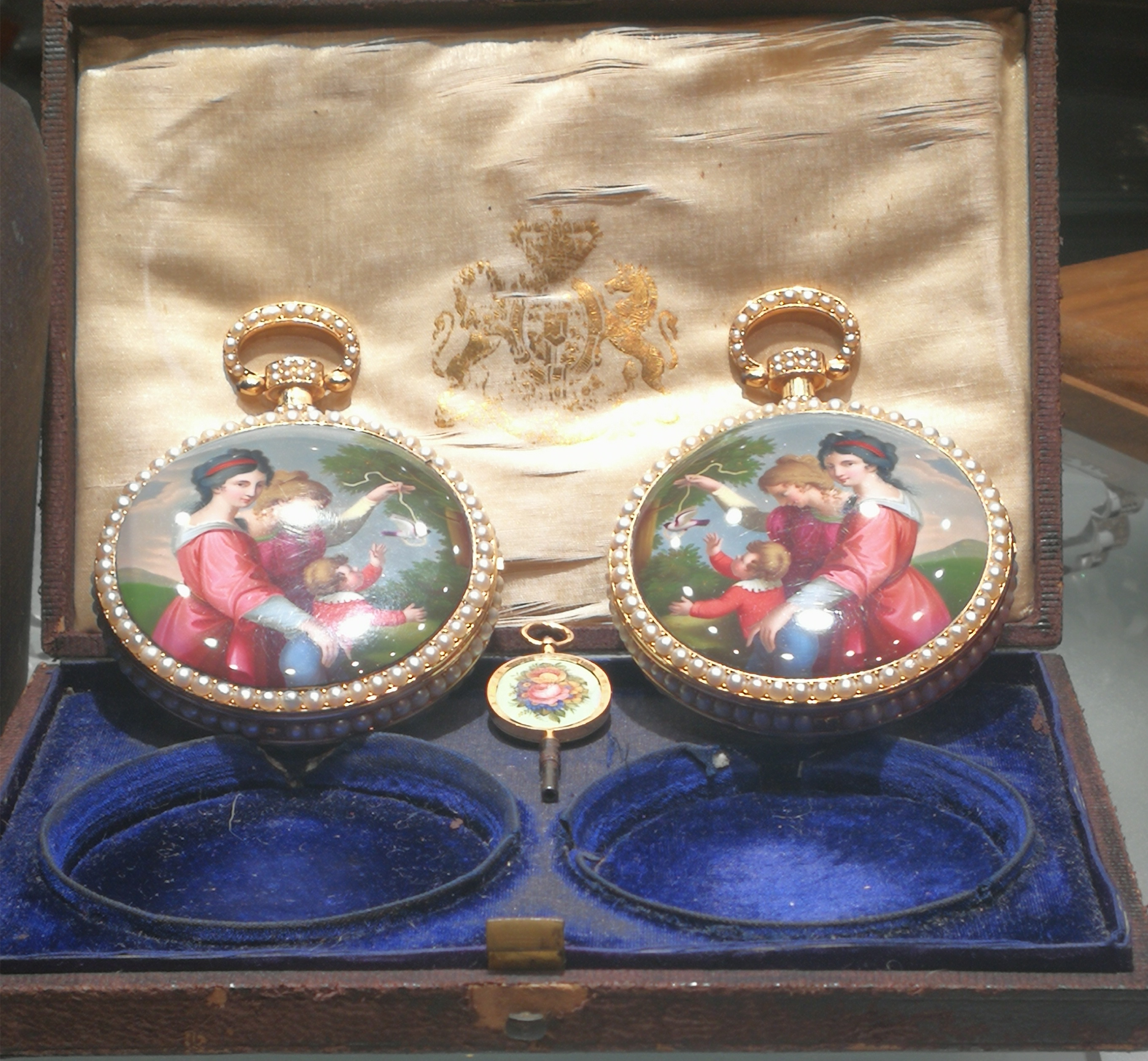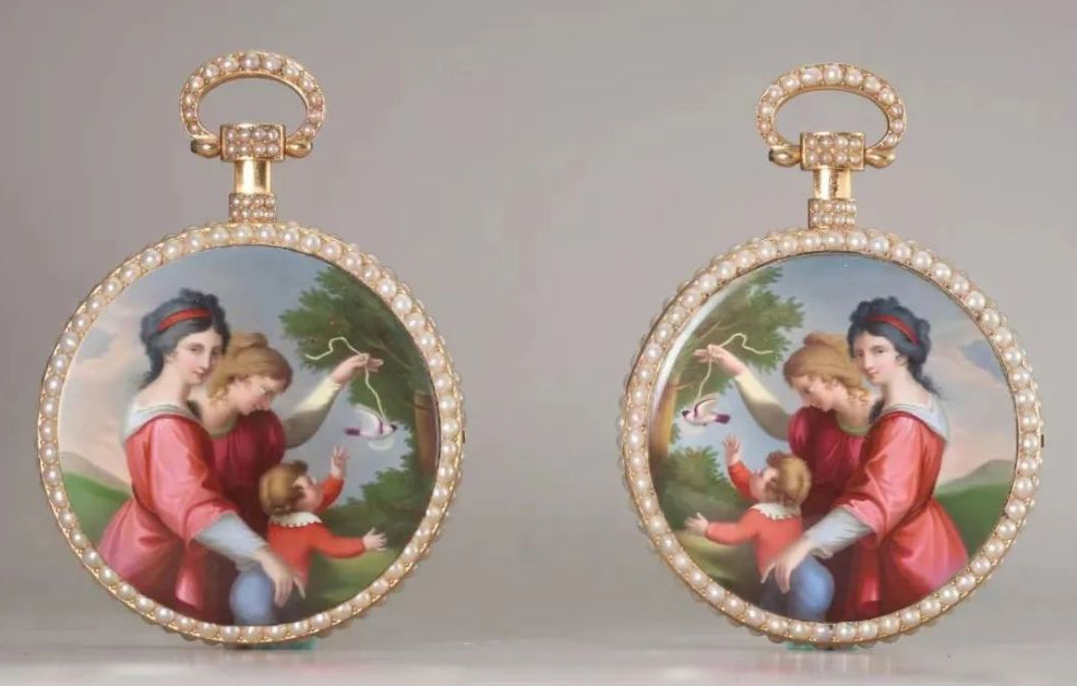 19世纪初金胎画珐琅嵌珍珠“温馨与纯真”对表