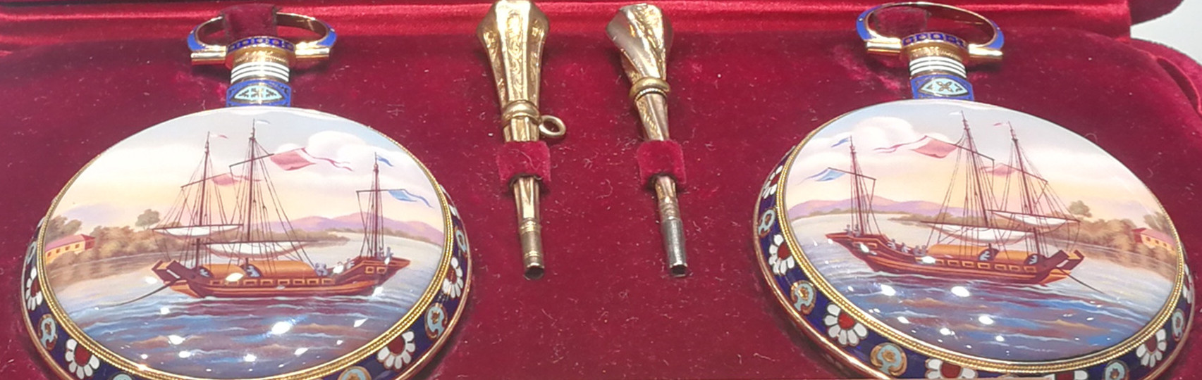19世纪初金胎画珐琅人物动偶嵌珍珠怀表