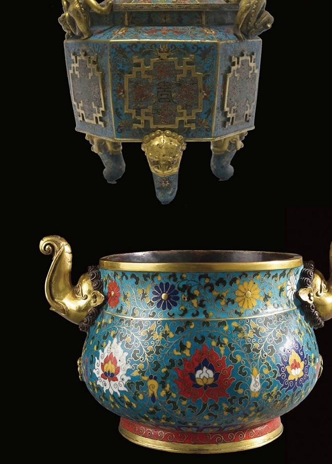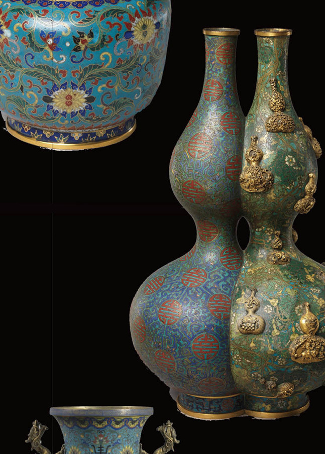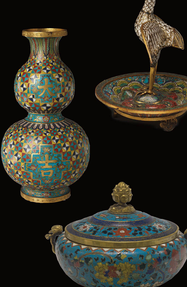 铜胎掐丝珐琅,是一种将各种颜色的珐琅附在胎上后烧制而成的瑰丽多彩的艺术品。此技艺元朝时从波斯或阿拉伯地区传入。因其是在明朝景泰年间兴起,因此命名为景泰珐琅或是景泰琅。
