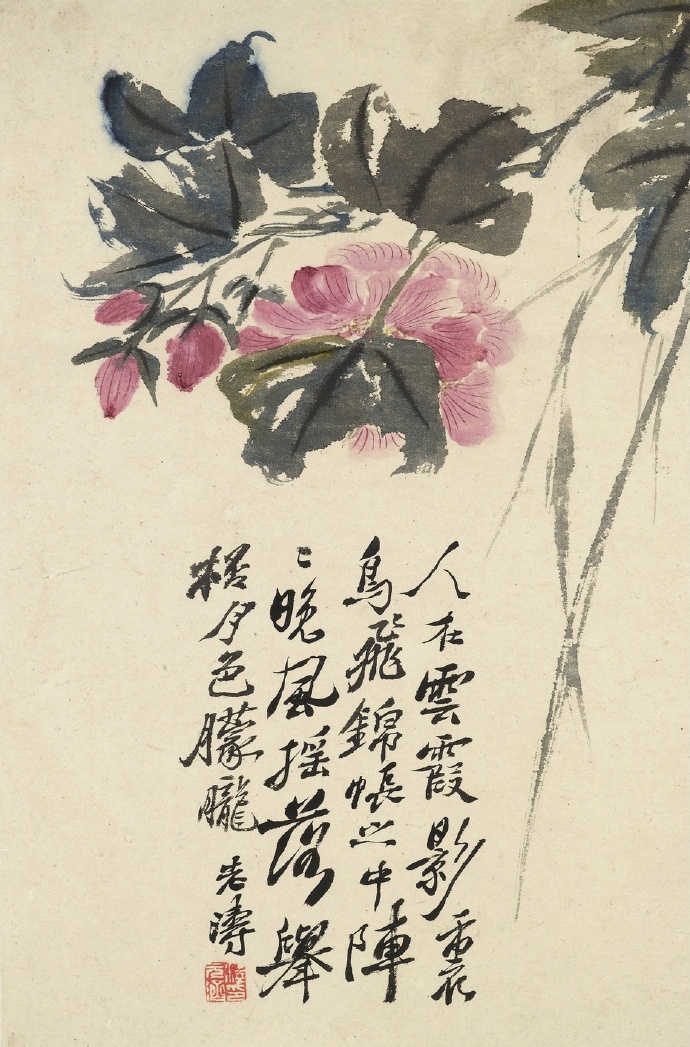 【按语】石涛是个绘画天才。他的画,题材广泛,风格多样,一生都在不断变化中,深化自己的笔墨与风调。天才加勤奋,自然而然地成大器。他擅山水、花卉、人物、走兽、兰竹、佛像,都有极高成就。此册画花十种,有泼墨淋漓的雨后荷花,有淡勾轻擦的水仙竹石,有枝疏花冷的墨梅,有姿娇色艳的海棠,有风神洒落的幽兰,有粗服乱头的芙蓉。笔法多样,构图各异,幅幅都有自题诗,五、六、七言不等,或绝句,或律诗,清新活泼,皆不作禅家枯寂语。书则或行或楷,洒落如其诗画。堪称三绝,的是精作。曾经清人孔广陶及近人张大千收藏,弥足珍贵。