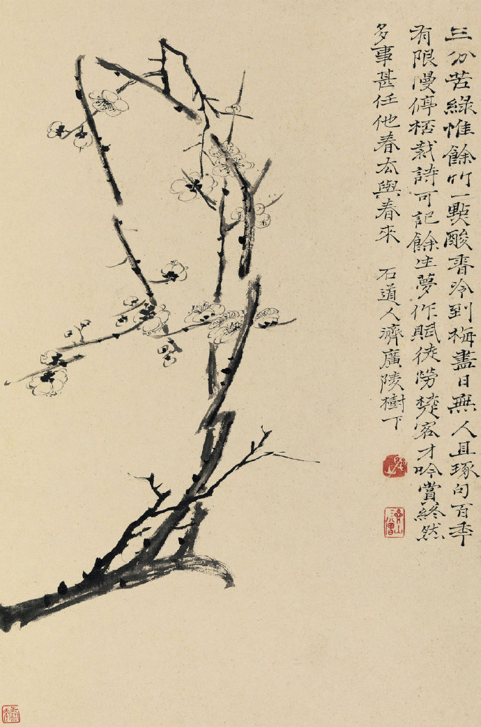 题识:三分苦绿惟余竹,一点酸香冷到梅。尽日无人且琢句,百年有限慢停杯。裁诗可记余生梦,作赋徒劳楚客才。吟赏终然多事甚,任他春去与春来。石道人济广陵树下。