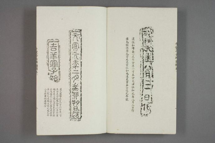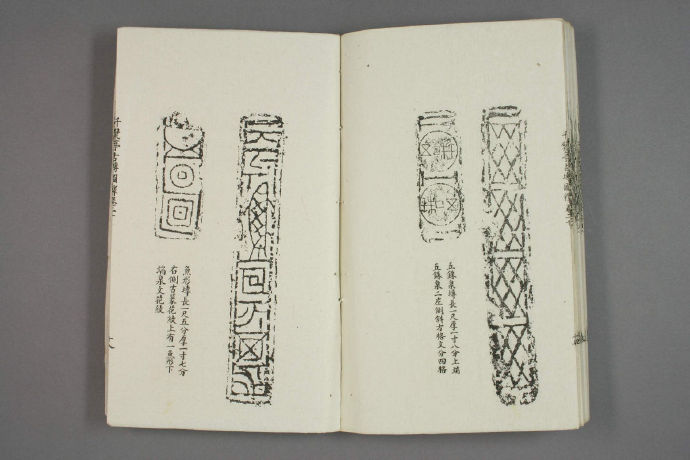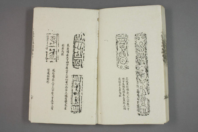 湖州大收藏家陆心源,他倾注了一生的心血,收藏汉魏至唐宋各时期古砖千余方,特别是汉、晋朝各帝号砖最多,号称“五百汉晋砖斋主人”,并专门建有千甓亭用以集藏。这些古砖均出自乌程和武康、长兴各县汉、三国、东晋、南朝古墓。光绪六年(1880),陆心源将这些墓砖砖文、纹饰拓出后,详加考证,光绪七年(1881)仿冯氏的《浙江砖录》格式,辑成《千甓亭砖录》6卷,光绪十四年(1888)又出版《千甓亭砖续录》4卷。陆心源倍感砖录有无图之缺憾,为了具有更具体、更直观的效果,于是让其子陆树藩、陆树屏及门人李延达用西法摄影对砖图进行拍摄并石印,再对照砖印作详细的文字说明,于光绪十七年(1891)出版《千甓亭古砖图释》20卷。陆氏撰著的古砖图释,既有篆文,又有图案,每一古砖均有详细注释(包含时代、产地、尺寸、内容、特点),考据精当,引用资料翔实,且版图逼真,在同类著作中影响较大。正如凌霞所云:“图与砖录并传,洵为璧合珠联,诚墨林独树一帜。”抗战期间千甓亭的古砖散失很多。解放后,陆氏后裔将其所剩全部献给浙江省博物馆,湖州市博物馆保存着这些古砖的拓片四百页。