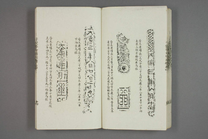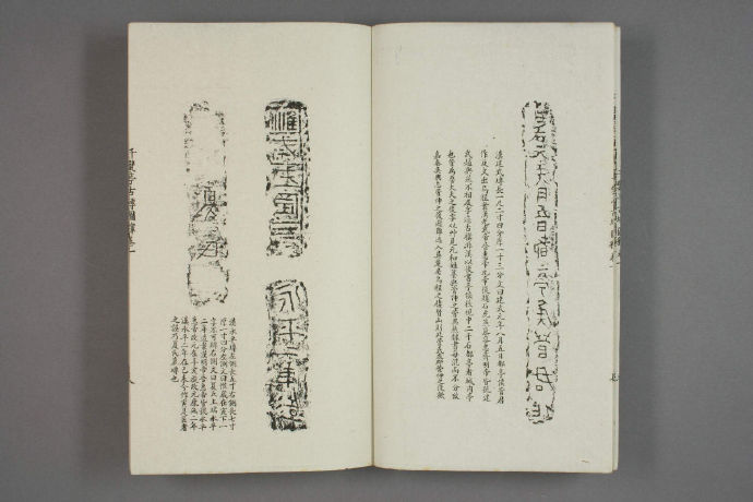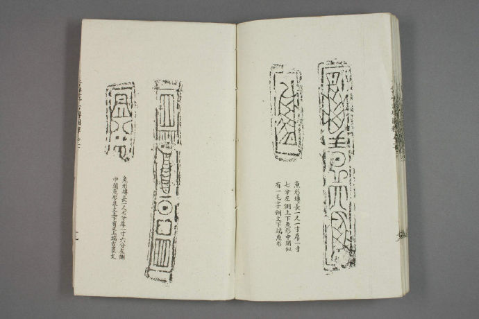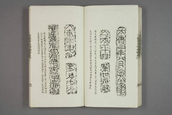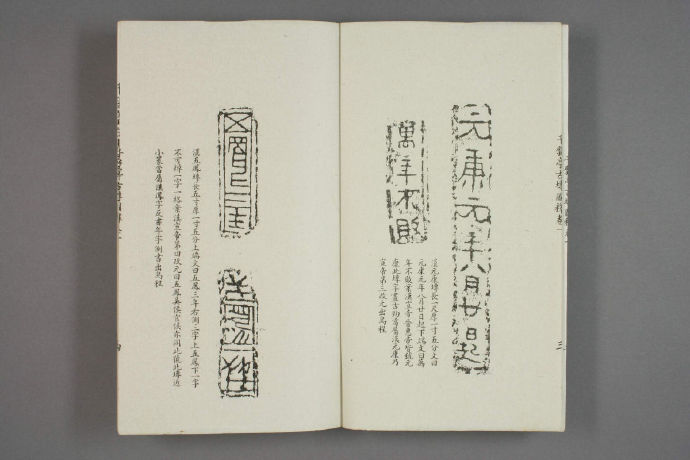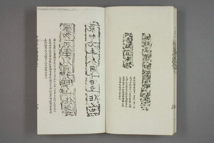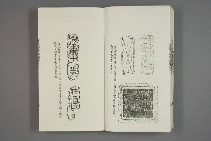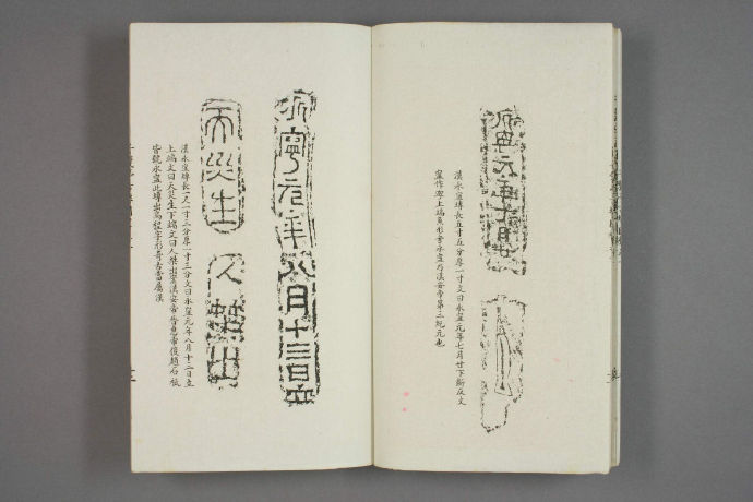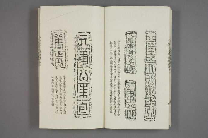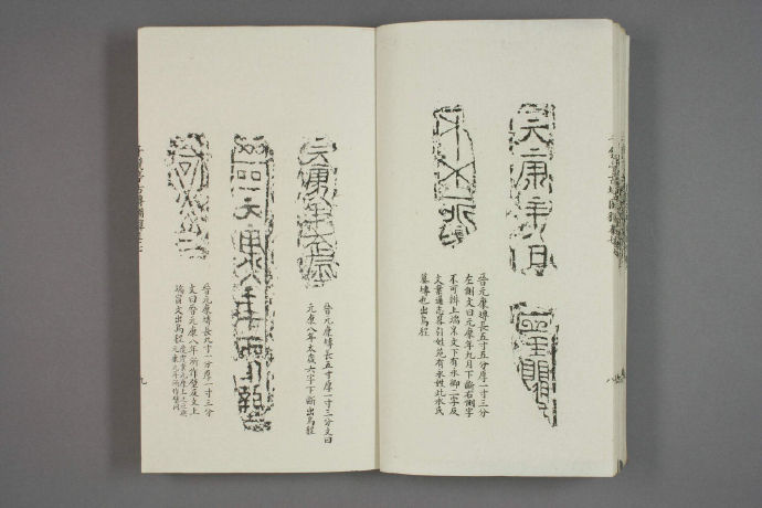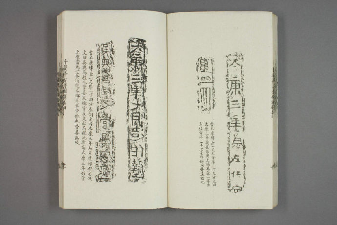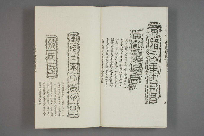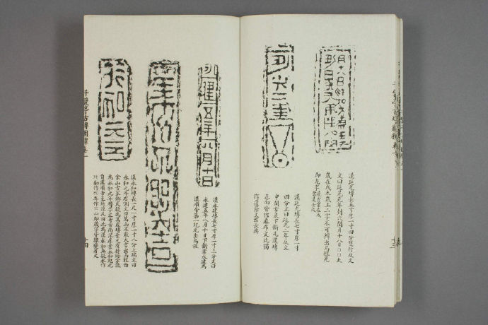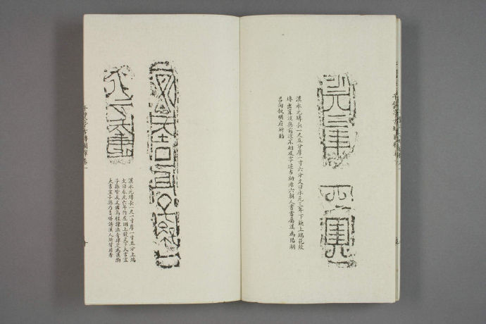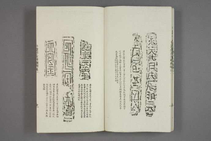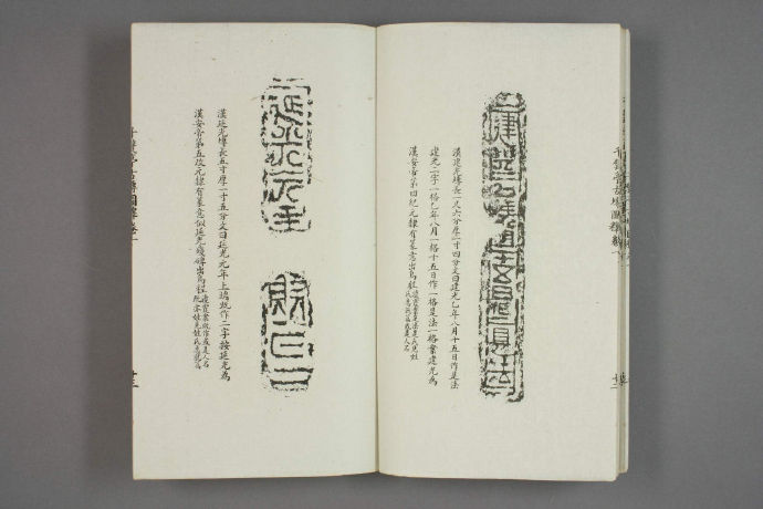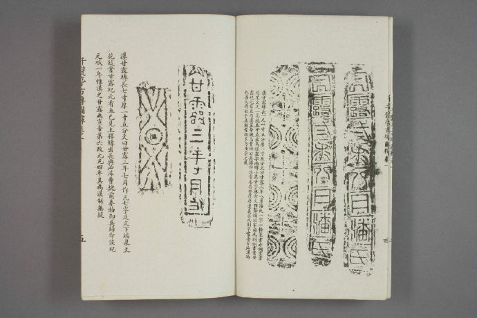 《千 甓亭古砖图释》二十卷,清陆心源著。此书为陆心源倾尽大半生心血收藏的汉魏至唐宋元各代古砖千余方,均出自湖州乌程、武康、长兴各县的古墓。并专门建千甓 亭贮之。本书名即来源于此。砖铭拓片纹样别致、字迹奇异,保留着许多古代纪元、地理、官制、姓氏等资料。每间砖旁有陆心源的批注和考证资料。本书对于研究 金石考古学和书画艺术具有很高的参考价值。