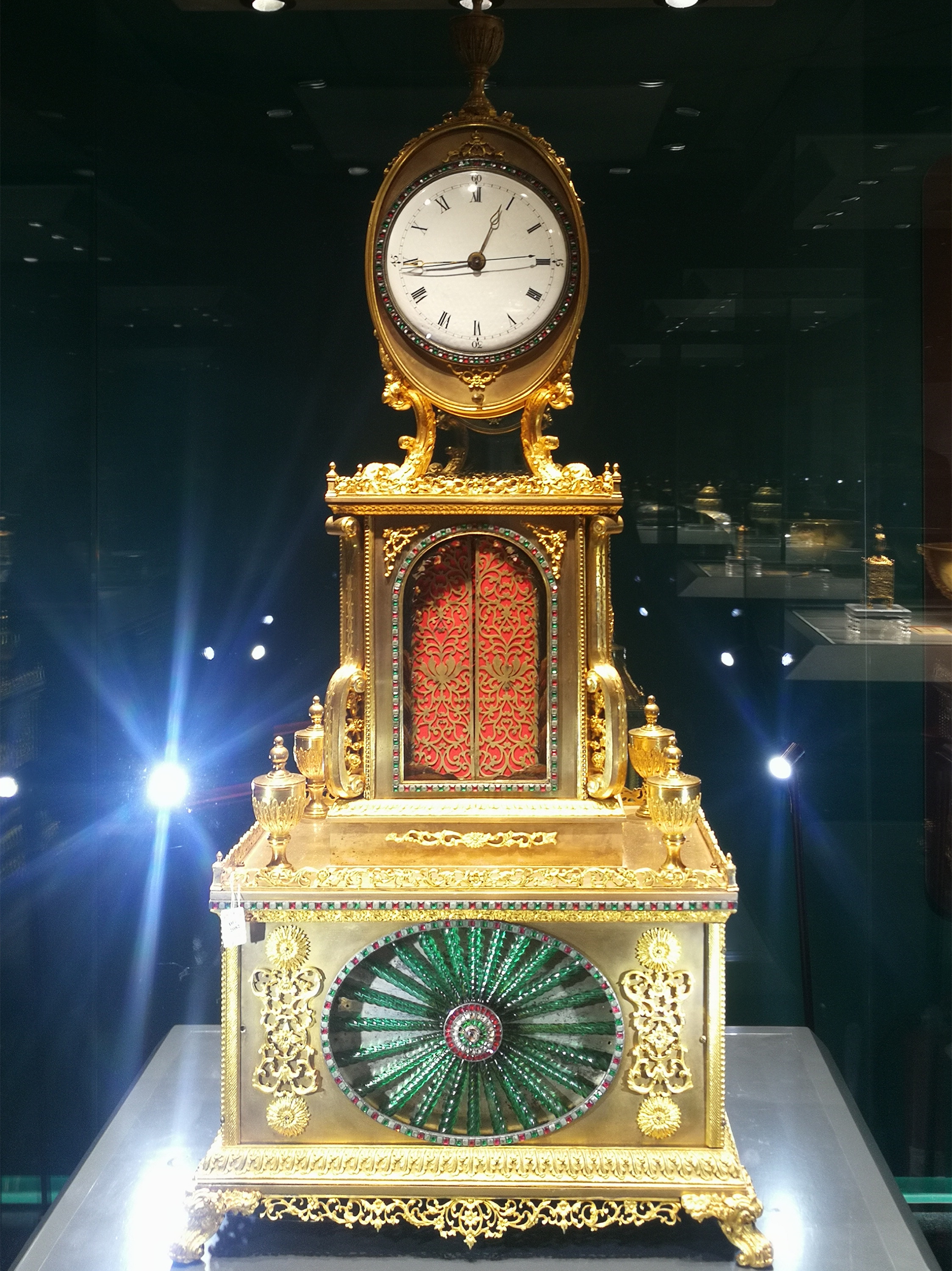 清高宗弘历喜爱钟表之情,为世人所知并被历史定格。此外,他赏赐钟表的记录也被档案所记载。例如:乾隆二十三年十二月初十日,“赏令妃表一件,庆嫔表一件,颖嫔表一件,忻嫔表一件、问钟一件,多贵人问钟二件”。受赏者是乾隆帝的嫔妃,说明钟表在宫廷人际关系互动中占有重要的地位,若非皇室近臣,岂能在受赏行列之内并拥有如此珍贵之物?