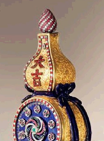 清乾隆御制铜鎏金转花转水法大吉葫芦钟
