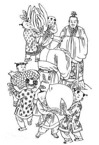 以佛手谐意福 ,以桃子谐意寿,以石榴暗喻多子,表现多福多寿多子的颂祷,故称福寿三多纹。