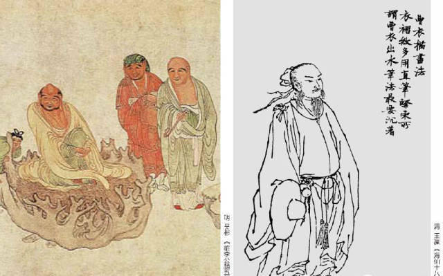 相传曹衣描是北朝著名画家曹仲达受到当时传入的印度美术风格的影响而创造出的。其线条以直挺的用笔为主,质感沉着圆浑,线条细密工致,紧贴身躯,宛如刚从水中湿淋淋地走上来一样,所以又被称为“ 曹衣出水 ”。北宋郭若虚的《图画见闻志》中就有 “ 曹衣出水描 ”的记载:“ 曹之笔,其体稠叠而衣服紧窄 ”。与吴道子风格的 “ 吴带当风 ” 相映辉,丰富了中国画的线描技法。如明代吴彬的《临李公麟五百罗汉图》,罗汉衣纹线条密集,紧贴身躯。正如《点石斋丛画》中所说:“ 用尖笔,其体重叠,衣褶紧穿,如蚯蚓描。” 这种线条,在明代丁云鹏、陈洪绶等人的作品也有体现。