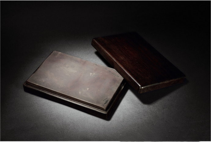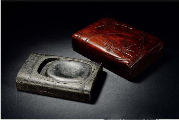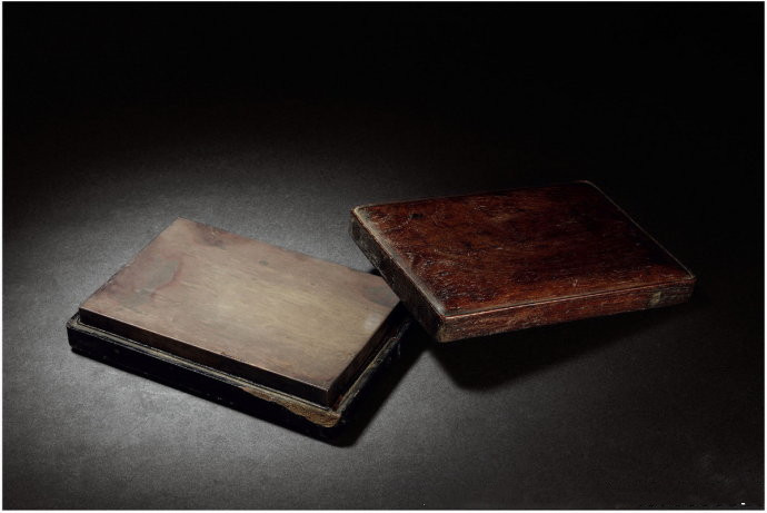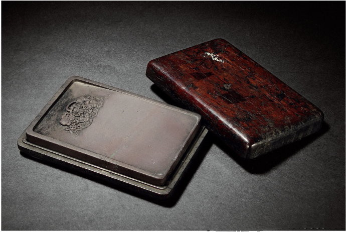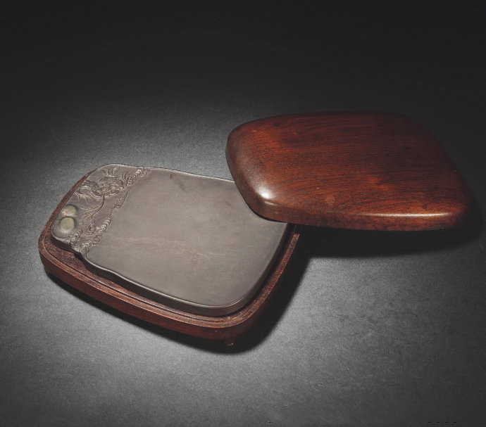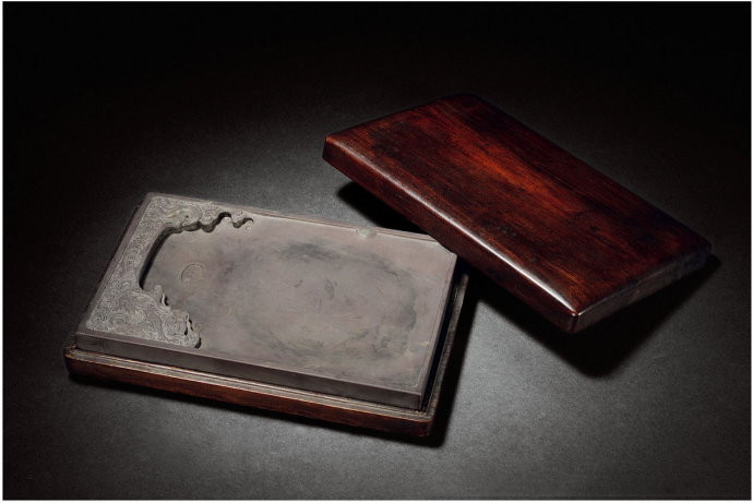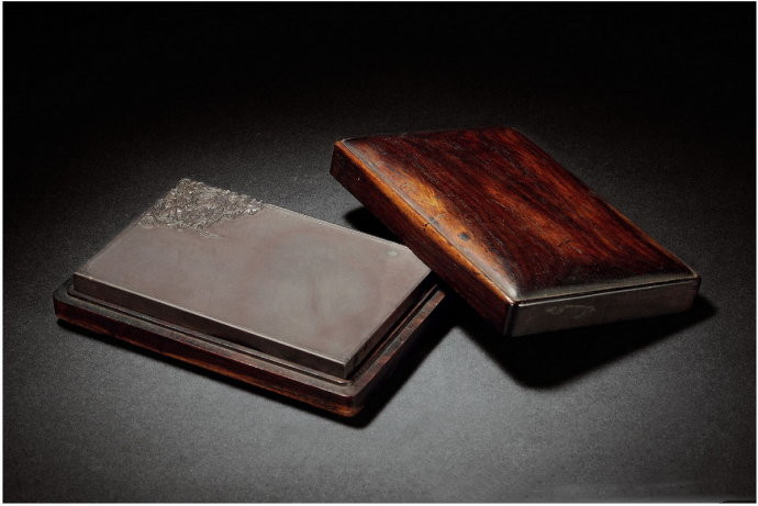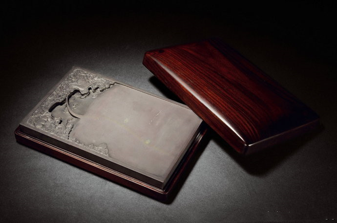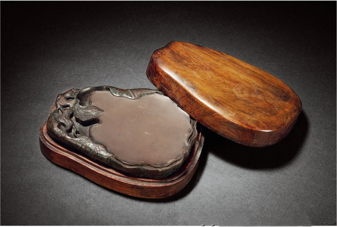 砚台又称研,是一种研墨的工具,它是伴随着笔和墨的发展而发展起来的。最早出现的砚台是石砚。汉代由于发明了人工制墨,墨可以直接在砚上研磨,于是砚台开始发展起来,出现了铜砚、陶砚、银砚、木胎漆砂砚等等,六朝至隋朝最突出的就是瓷砚的出现。唐代是砚台的重要发展时期,出现了端石和歙石两大砚材,明清时期制砚的材质更加丰富,出现了瓦砚、铁砚、锡砚、玉砚、象牙砚、竹砚等等。木砚研究始于何时,没有定论,但以清代居多。木材因其本性所限定,实际并不适宜做砚台,但文人的浪漫将这种大胆的尝试,与工匠的巧思融合在一起,为我们留下了许多颇为精美的文房陈设品。