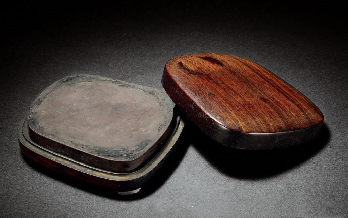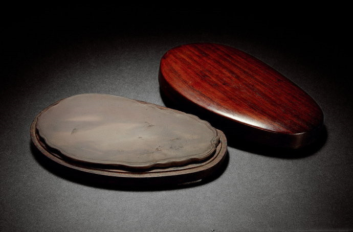 清·吴大徵铭、徐熙刻、陆恢自用随形两面端砚