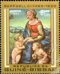 几内亚比绍GUB8301CO【1983.6.30】《拉斐尔诞生500-年,绘画》7全7-5《拉斐尔:花园里的圣母》