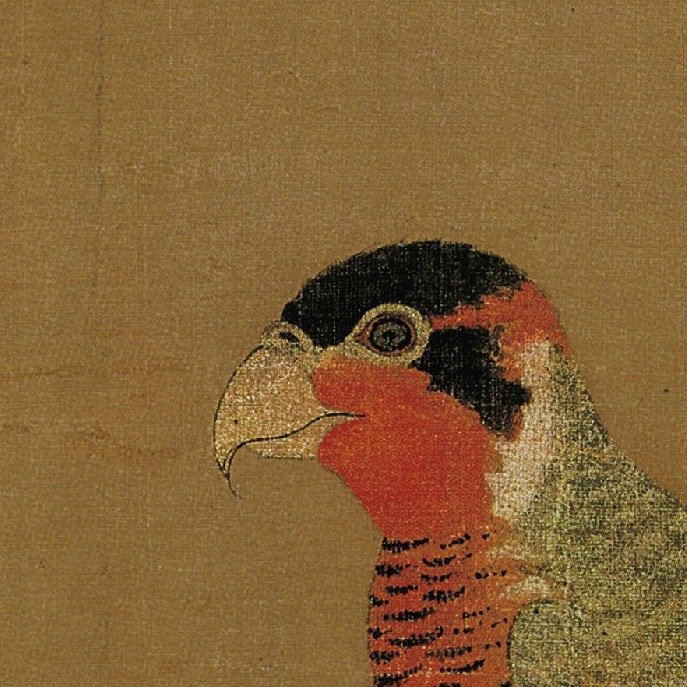 回京后查阅傅熹年老先生访美读画录,谈到徽宗《五色鹦鹉图》卷结论:绢本设色。《宣和睿赏》册佚出之物,中间断开拚接,故己不见折缝痕。是宋画院中人作,非赵佶笔。又有人疑为元人仿本,何据?