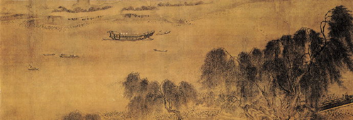 荷香清夏图,马麟,宋代,绢本,设色,纵41厘米,横323厘米,现藏辽宁省博物馆。
