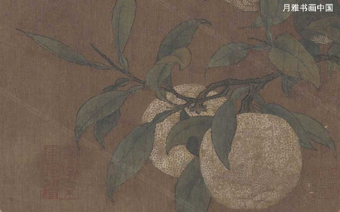 《橘绿图》页,宋,马麟绘,纨扇,绢本,设色,纵23cm,横23.5cm。