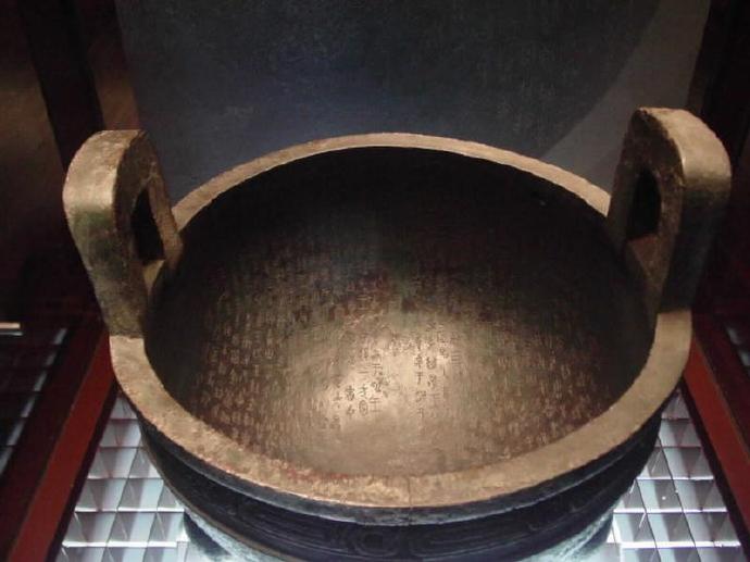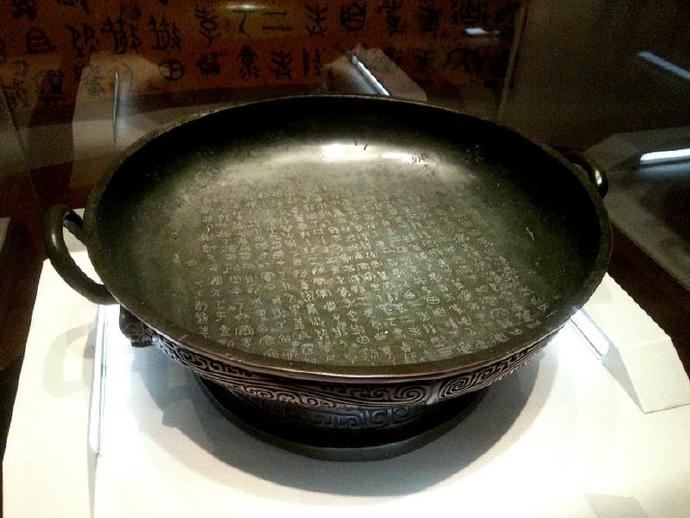毛公鼎是中国二千八百多年前的一件宗庙祭器。它的内壁铸有五百个字的长铭,是现存商周两代七千多件有铭文的铜器中,铭文最长的一件。铭文的内容可分成七段,大意是说:周宣王即位之初,亟思振兴朝政,乃请叔父毛公为其治理国家内外的大小政务,并饬勤公无私,又令毛公族人担任禁卫军,保护王室,最后颁赠厚赐,毛公因而铸鼎传示子孙永宝。由内容推测,毛公鼎应铸于周宣王元年(公元前827年)时,其铭文是可凌驾于《尚书》的一篇西周真实史料,是研究西周史最珍贵的文献,因此毛公鼎可称是举世的国宝重器。毛公鼎通高53.8厘米,清道光年间于陕西省岐山县周原出土,毛公鼎系于清代末叶道光28年(公元1814年)前后,在陕西省岐山县出土。毛公鼎现由台北故宫博物院典藏并展示。铭文中有阳文网格线,是西周中晚期制铭的习惯,因此除了史料的价值外,毛公鼎在中国古文字学与书法艺术上也具有举足轻重的地位。