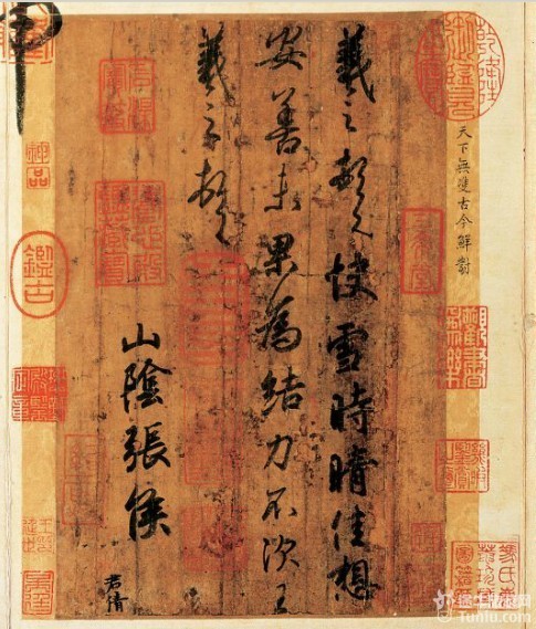 释文:羲之顿首。快雪时晴。佳想安否。未果为结。力不次。王羲之顿首。山阴张侯。