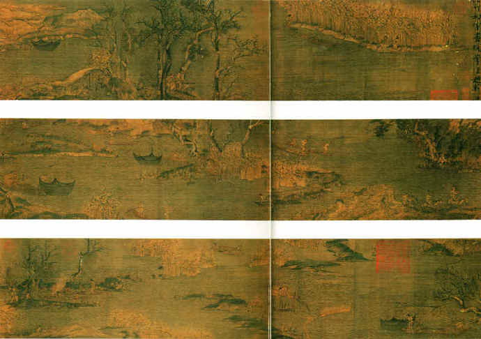 李唐(1049—1130)河阳人,字晞古。山水初法唐代李思训,其后变化自成一格。《万壑松风图》气势雄浑,令人神惊目眩,为李唐76岁时所画。这幅传世绘画无论构图、笔墨还是设色均为极精之品。