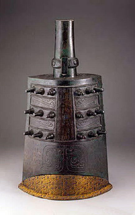 铭文自钟身正中起读,接着左下角再转至背面右下角,全篇132字,是商周单件钟铭最长者。钟中因为有一人名可与周厉王的名字“胡”音相通,故定为周厉王之器。宗周钟是甬钟的代表,外形上的最大特征,是钟身两面共装饰36枚高突的长形乳钉纹,极尽华丽之象。此钟音质浑厚宏亮,有宗庙庄严之概。