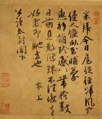 释文:蒙惠水林檎花,多感。天气暄和,体履佳安。襄上,公谨太尉左右。