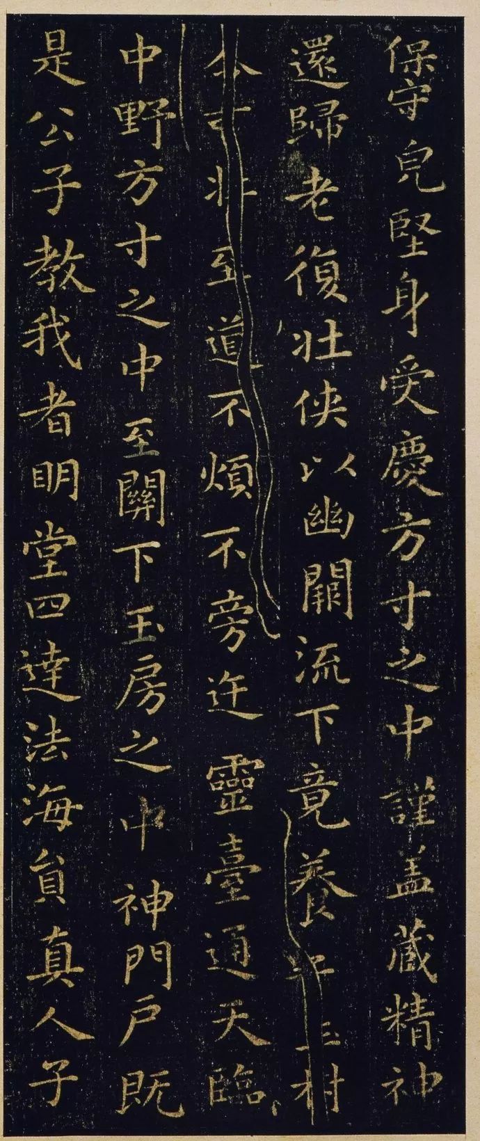 【3】保守貌坚身受庆,方寸之中谨盖藏,精神还归老复壮,侠以幽阙流下竟,养子玉树杖可扶,至道不烦不旁迕,灵台通天临中野,方寸之中至关下,玉房之中神门户,既是公子教我者,明堂四达法海员,真人子