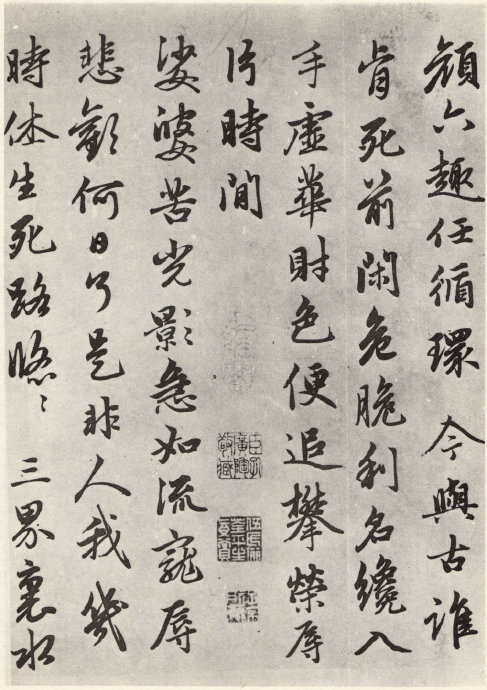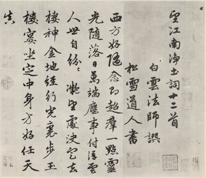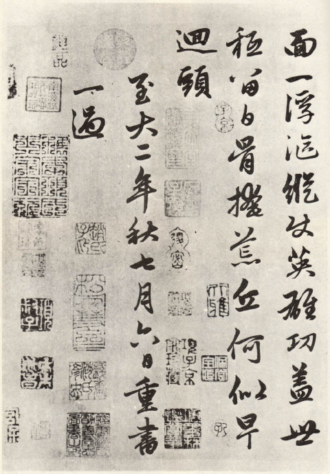 赵孟睿1254-1322),字子昂,号松雪,松雪道人,湖州(今浙江吴兴)人。宋太祖赵匡胤十一世孙,秦王德芳之后。赵孟钜簧卧洌艘两兼,他虽为贵胄,但生不逢时,青少年时期南宋王朝已如大厦将倾,他在坎坷忧患中度过。他的父亲赵与告官至户部侍郎兼知临安府浙西安抚使,善诗文,富收藏,给赵孟钜院芎玫奈幕铡5悦项十一岁时父亲便去世了,家境每况愈下,度日维艰。宋灭亡后,归故乡闲居。元至元二十三年(1286年)行台恃御史程钜夫“奉诏搜访遗逸于江南”,赵孟畹仁嗳耍煌萍龈雷婧霰亓遥踔辆┏牵悦项立即受到元世祖的接见,元世祖赞赏其才貌,惊呼为“神仙中人”,给予种种礼遇,被任命为从五品官阶的兵部郎中,两年后任从四品的集贤直学士。至元二十九年(1292)出任济南路总管府事;在济南路总管任上,元贞元年(1295),因世祖去世,成宗需修《世祖实录》,赵孟钅吮徽倩鼐┏恰?墒窃⒛诓棵苤刂兀耍凶灾鞯恼悦纤潮憬璨∑蚬椋那镏恢沼诘米挤祷乩鸲嗄甑墓氏缥庑恕U悦项在江南闲居四年,无官一身轻,闲情逸致与鲜于枢、仇远、戴表元、邓文原等四方才土聚于西子湖畔,谈艺论道,挥毫遣兴,过着与世无争的宁静生活。大德三年(1299),赵孟畋蝗蚊椭毖列薪愕却θ逖峋伲傥凰湮奚ǎ酥安恍枥肟希胛幕缌得芮校喽匀逖哦惺剩冉鲜屎险悦项的旨趣,他一直干了十一年。至大三年(1310),赵孟畹拿朔⑸吮浠;侍影璋瘟Π舜锒运⑸诵巳ぃ菡悦项翰林侍读学士,知制诰同修国史,次年五月,爱育黎拔力八达即位,是为仁宗。他登基后不久,立即将赵孟钌佣品的集贤侍讲学士、中奉大夫。延祜三年(1316),元仁宗又将赵孟罱擦盅砍兄肌⑷俾淮蠓颍倬哟右黄贰V链耍允险治地位达到了一生中的顶峰。由于仁宗的青睐和赵氏艺术的出类拔萃,赵孟钔砟昝院眨肮倬右黄罚煜隆薄