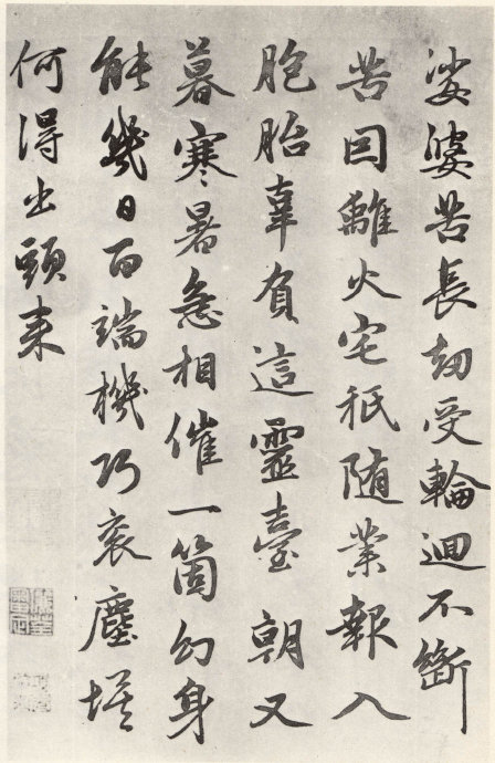 娑婆苦。长劫受轮回。不断苦因离火宅。只随业报入胞胎。辜负这灵台。
