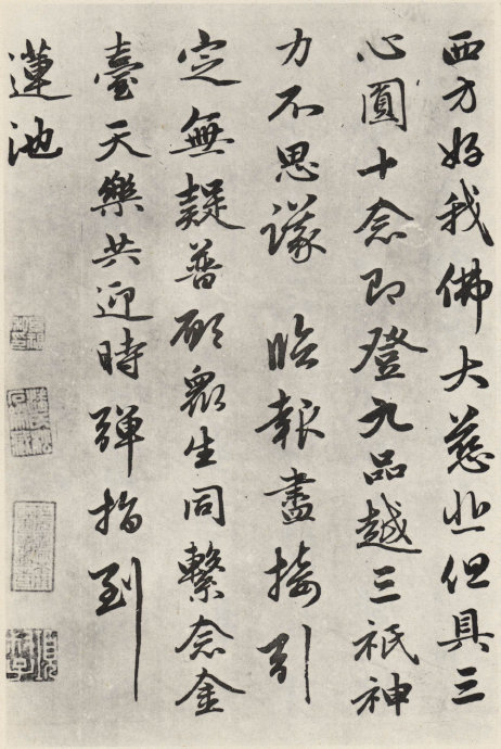 西方好。我佛大慈悲。但具三心圆十念。即登九品越三只。神力不思议。