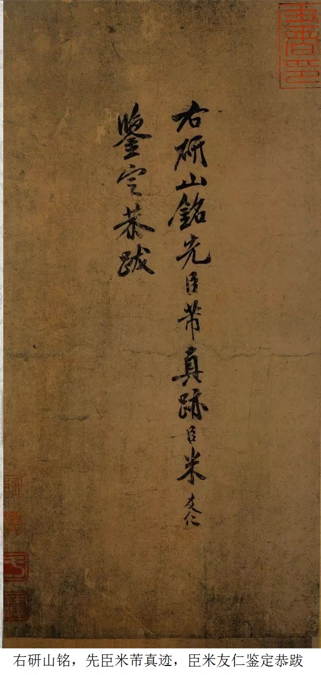 右研山铭,先臣米芾真迹,臣米友仁鉴定恭跋。