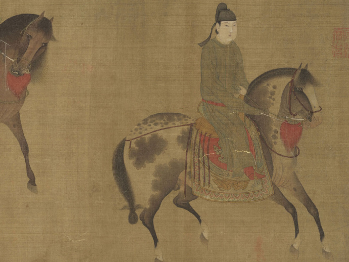 李公麟的《丽人行图》与唐代张萱的《虢国夫人游春图》两件作品间构图有所不同,但是从画上的人马造型细节上看,两件作品之间应该有一定的渊源关系。对于这两件画作的认识,目前有学者提出了他们的看法:吴同先生认为《虢国夫人游春图》质量优于《丽人行图》,高居翰先生认为《丽人行图》的时代与质量较之《虢国夫人游春图》为早与优,章采烈先生认为《丽人行图》比《虢国夫人游春图》的时代早,且更接近于张萱原作本意。
