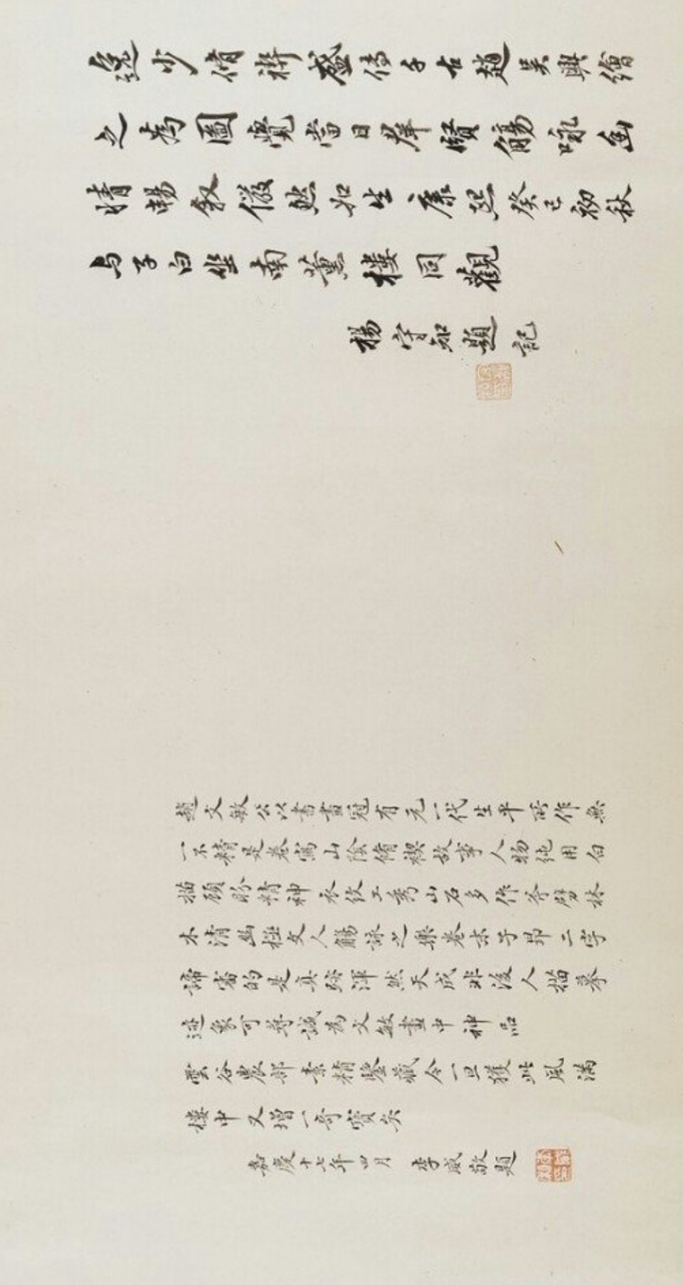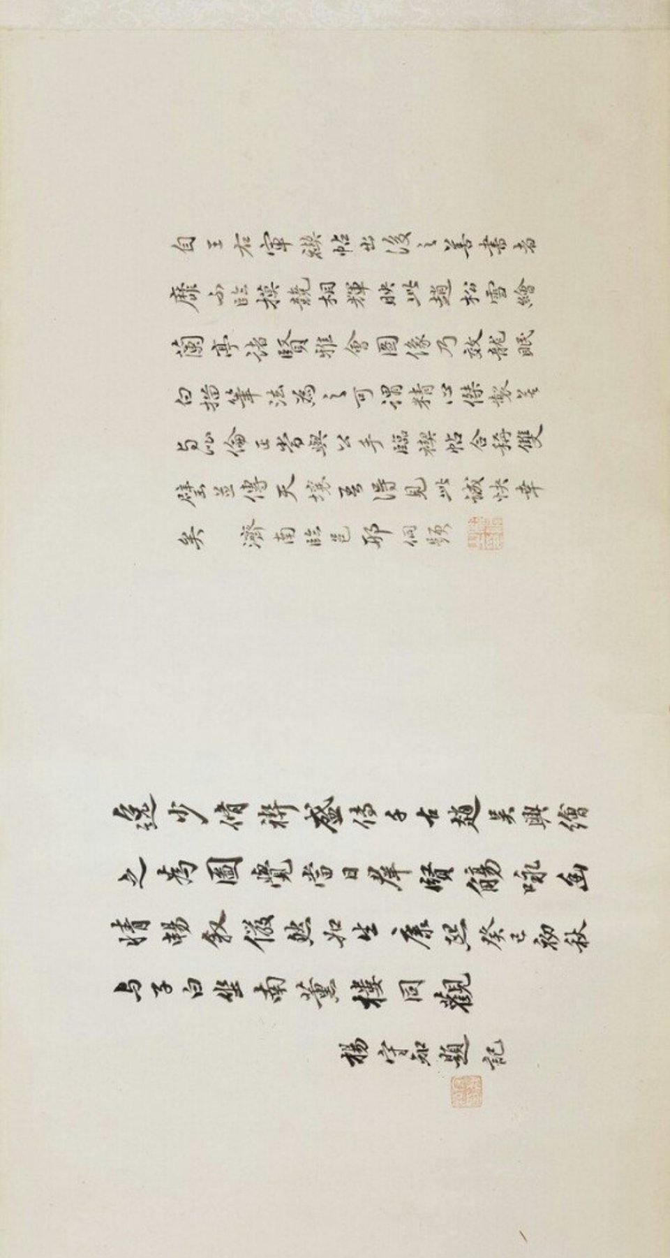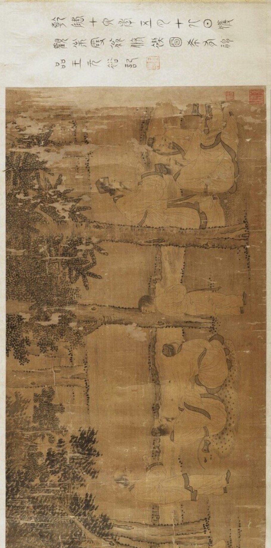 传:七玺全。太上皇帝之宝。寿。宝笈重编。退密。天籁阁。虚朗斋。寄傲。项子京家珍藏。项元汴印。项元汴氏审定真迹。蝶庵书画。檇李李氏鹤梦轩珍藏记。李肇亨。江村秘藏。高士奇书画记。高士奇秘籍印。安氏仪周书画之章。安仪周家珍藏。古香书屋。安。志希考藏。罗志希图书记。三印不辨。(本幅钤有石渠宝笈续编印记。查石渠宝笈续编着录者为轴非卷。)钤印一。赵氏子昂。