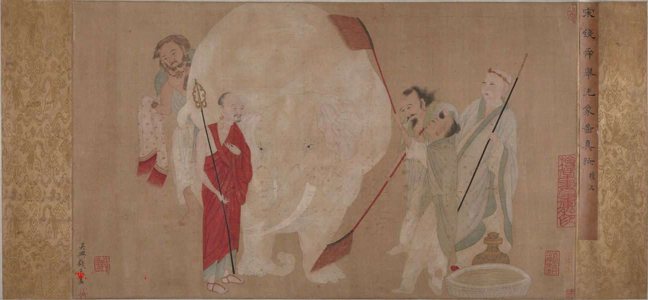 宋 钱选 书画精品《宋钱舜举洗象图真迹》(美国大都会博物馆藏)