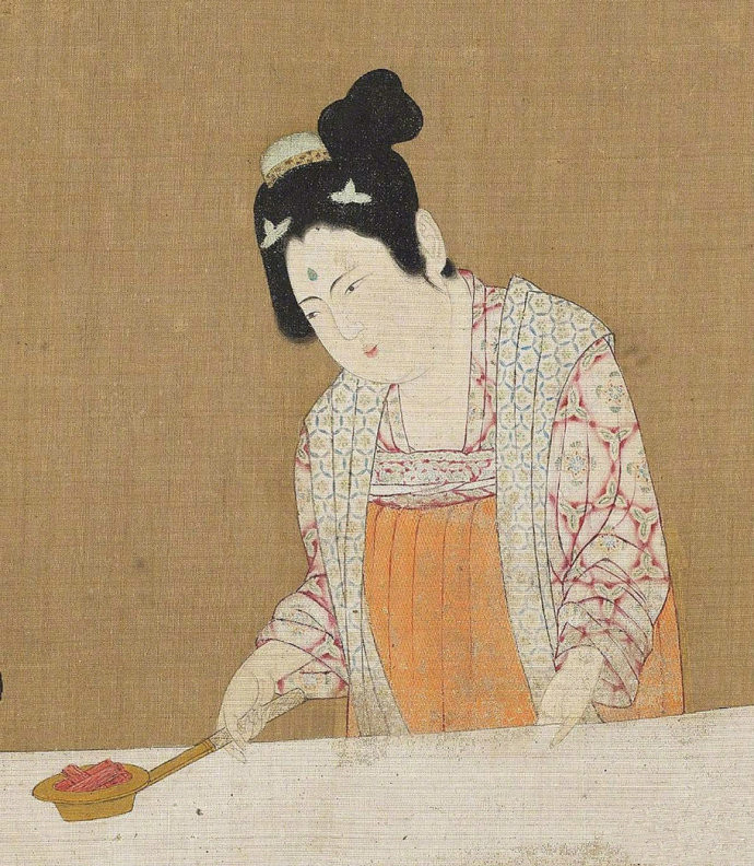 张萱(公元713——741年),京兆(陕西省西安)人,开元时曾任史馆画直。“善起草”,对亭台、树木、花鸟、皆穷其妙,尤擅长仕女画。在《宣和画谱》所载绘画作品中,有不少是描绘贵族妇女游春、梳妆、鼓琴、奏乐、横笛、藏迷、赏雪等悠雅闲散生活场景的画迹。画中的贵族妇女大都具有曲眉丰颊,体态肥硕、服装头饰繁缛华丽的突出特点,被称做“绮罗人物”。