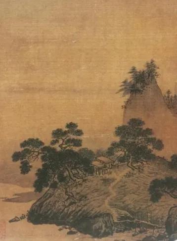 北宋 高克明(传) 松岫渔村图页 绢本浅设色 24.2x25.8厘米 台北故宫博物院藏