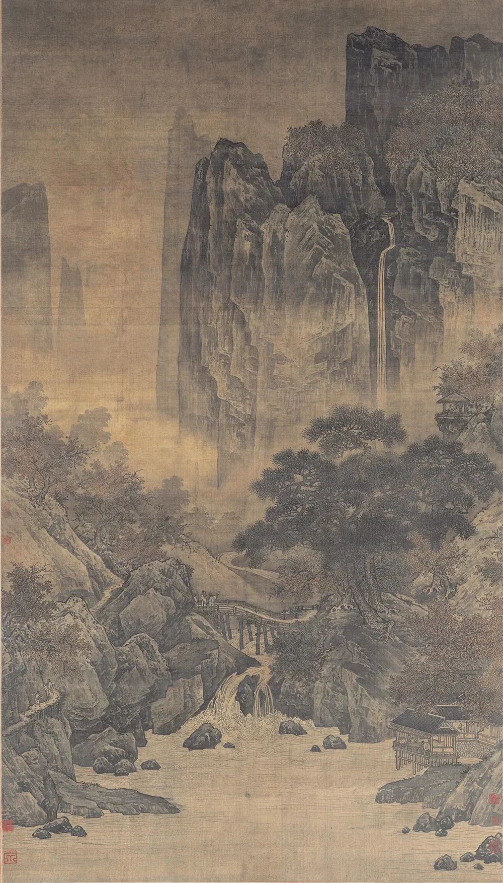 南宋 萧照《秋山红树图》绢本197.8x111.8cm