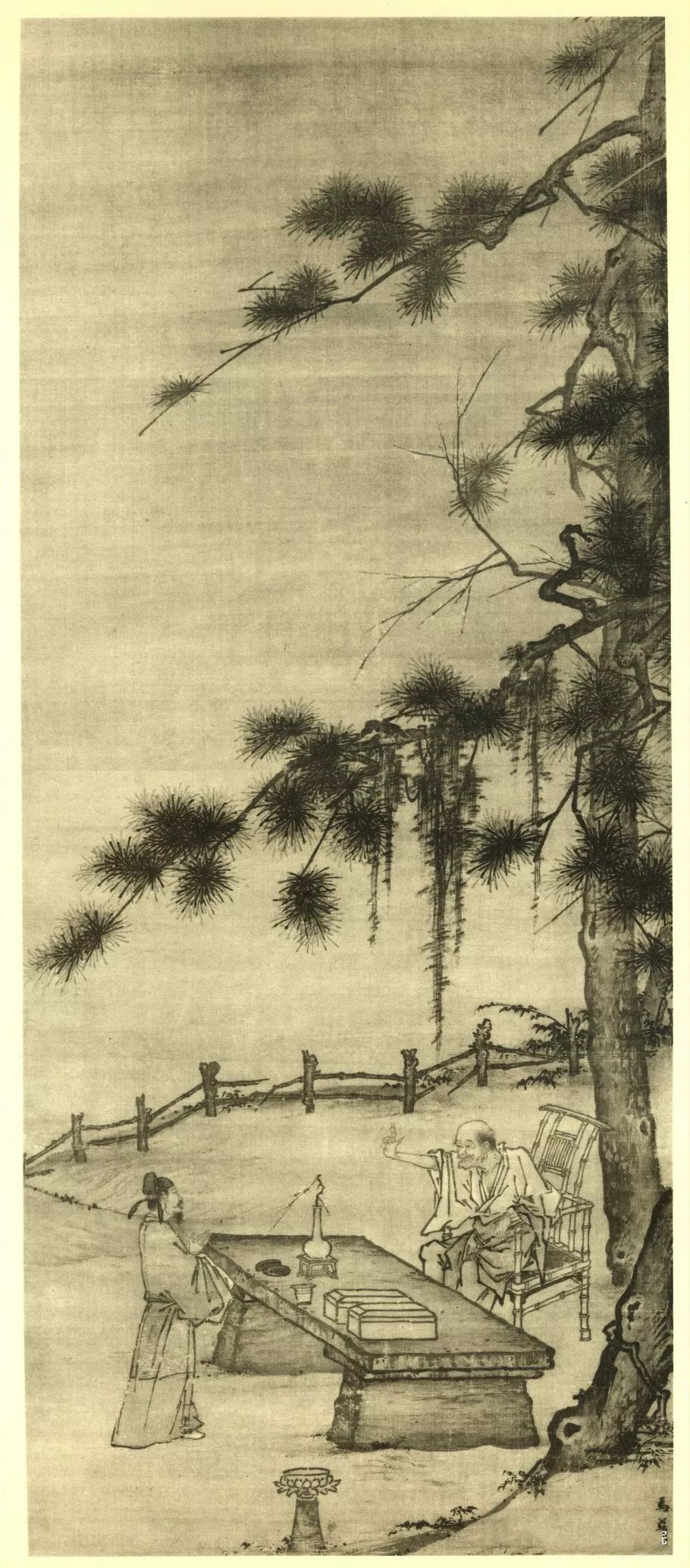宋 马公显 药山李翱问答图 绢本水墨浅设色 25.9×48.5公分 日本京都南禅寺藏