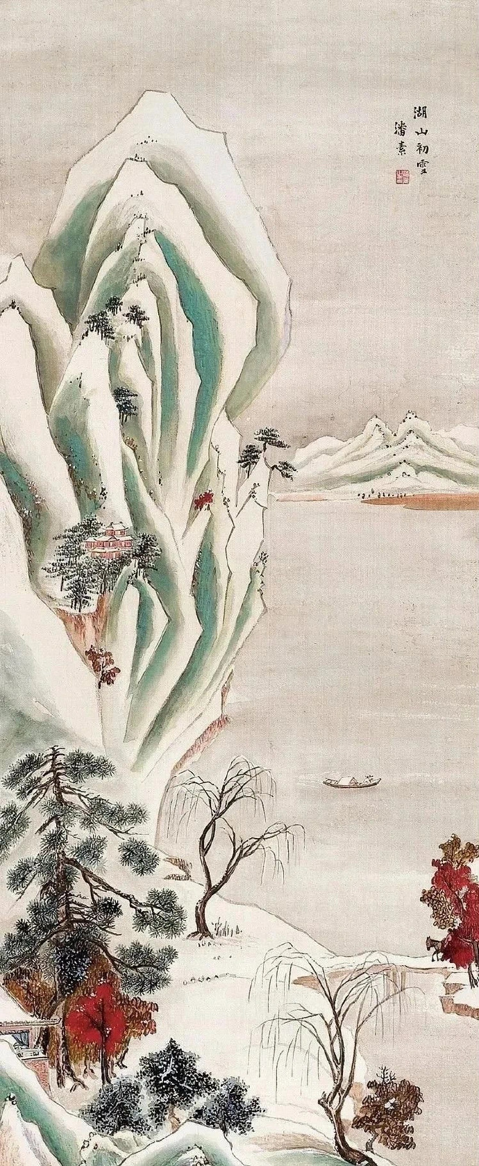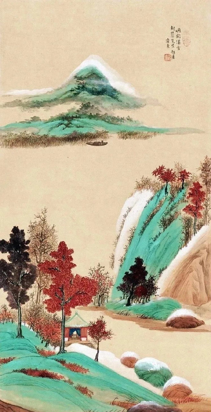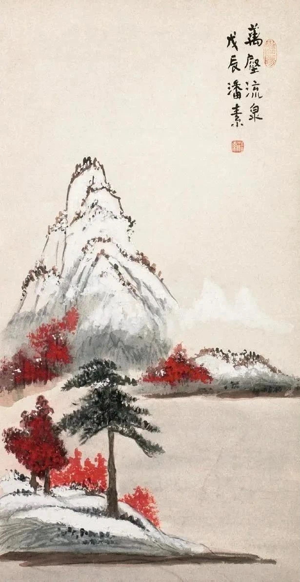 潘素(1915-1992)原名潘妃,清朝著名状元宰相潘世恩的后代,著名收藏家张伯驹先生的夫人。潘素自幼酷爱绘画,初从朱德箐习作花卉,后与老画家陶心如、祁景西、张梦嘉合作绘画,尤擅长工笔重彩山水画,承继了细密严谨,金碧绯映的一派,是我国著名的青绿山水画家