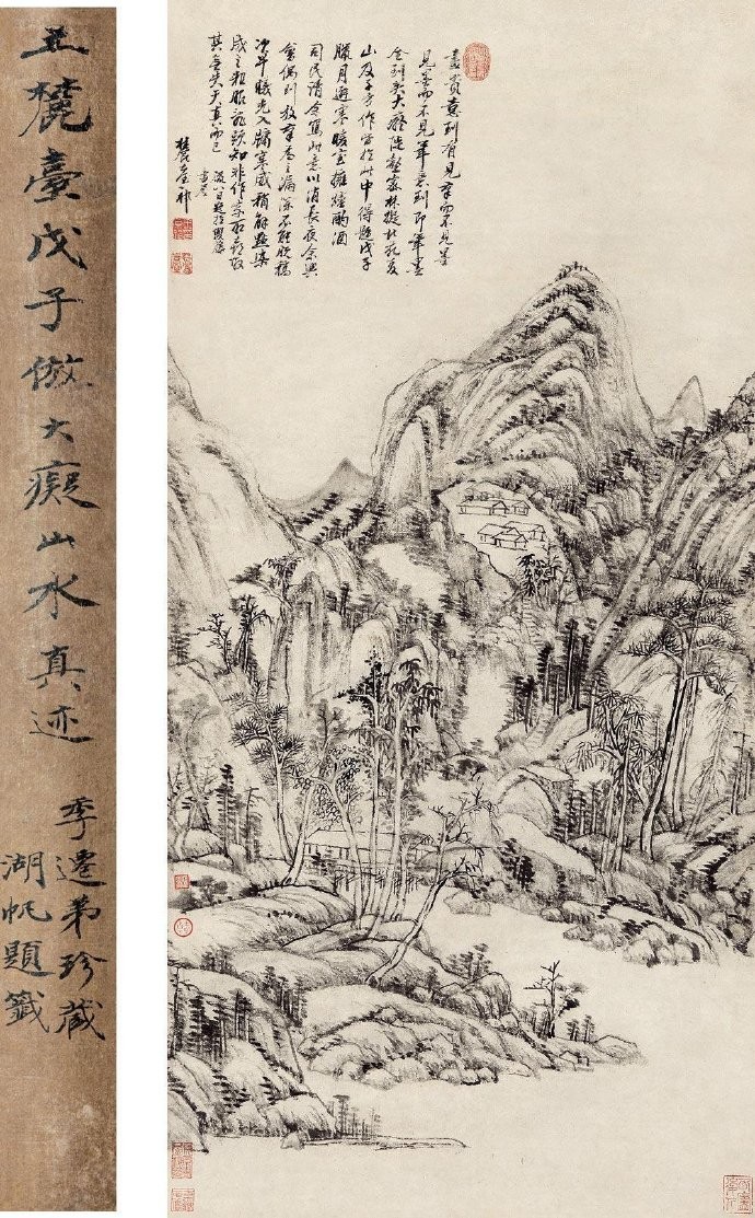 题签:王麓台戊子仿大痴山水真迹,季迁弟珍藏。湖帆题籖。
