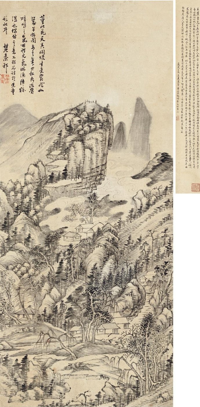 款识:董北苑天真烂漫,生意蓊然,如江南半幅图,要其笔力扛鼎,沉郁磅礴之气,所谓元气淋漓,障犹湿也,偶仿其意,不欲见诮于儿童形似耳。麓台祁。