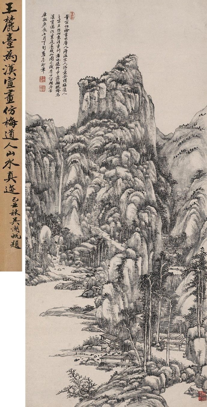 签条:王麓台仿梅道人山水真迹。梅景书屋珍藏。