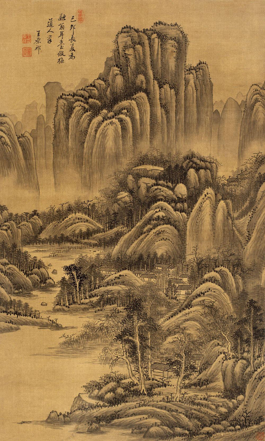 款识:己卯长夏,为融翁年台仿梅道人笔,王原祁。