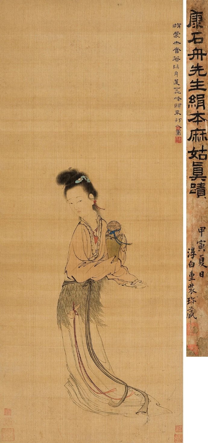 康涛,清乾隆年间人。后更名焘,字逸斋,一字康山,号石舟,又号既济生,晚号天笃山人、莲蕊峰头不朽人、茅心老人、荆心老人,钱塘(今杭州)布衣。 以孝闻 。 工画,精仕女,姿态静逸,在能妙之间 。 雍正五年(1727)尝写三娘子像 。 乾隆二十年(1755)作仕女打鹂图。 兼善山水、花鸟 。 工书,年七十能作蝇头小楷 。 《清画家诗史、扬州画舫录、读画随笔》 。 其它传世作品有 《孟母断机教子图》、《大富贵图》。