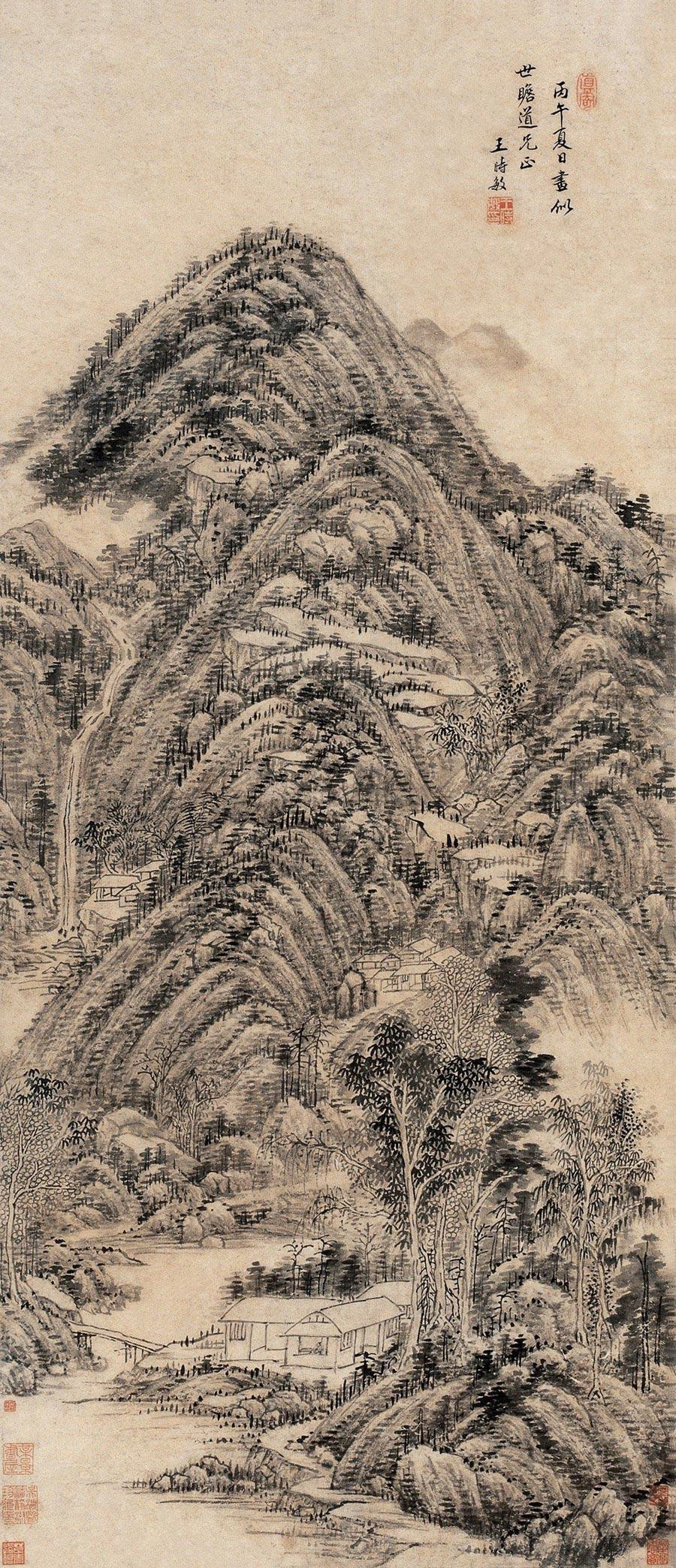 款识:丙午夏日画似世瞻道兄正。王时敏。