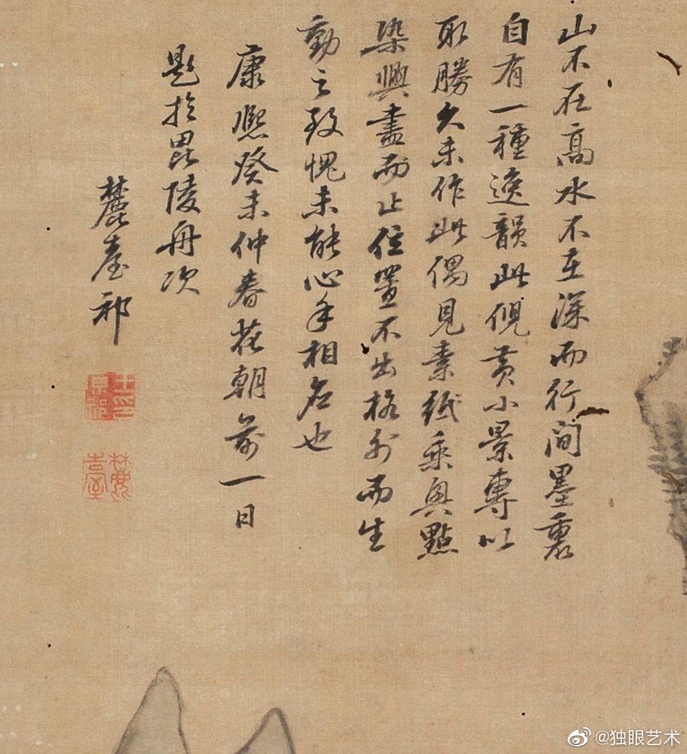 题识:康熙癸未仲春前朝前一日题于毗陵舟次。麓台祁。