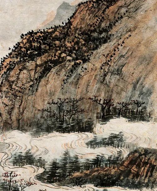 在艺术创作上髡残是个敢于打破常规的人,他用笔繁密,追求草木繁茂的华滋美感。