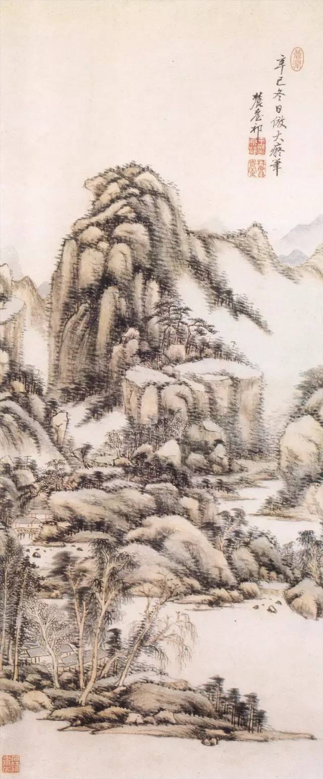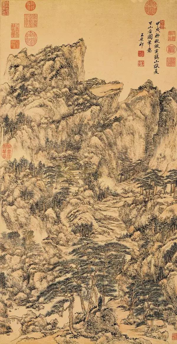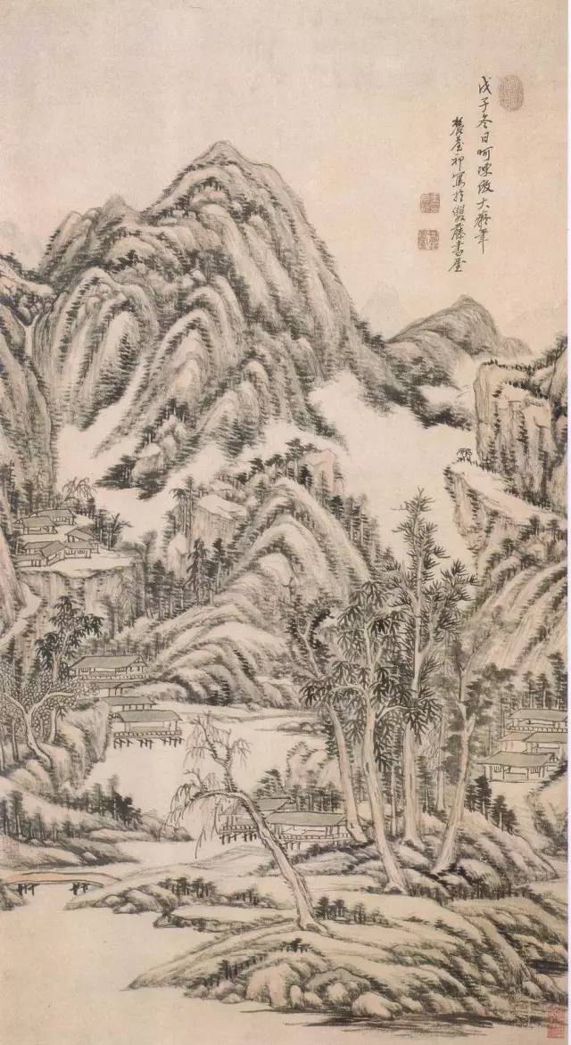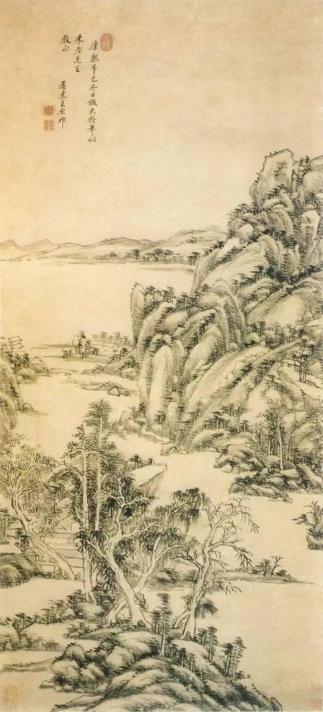 王原祁,明崇祯十五年(1642年)生,清康熙五十四年1715年)卒。字茂京,号麓台、石师道人,江苏太仓人,王时敏孙。康熙九年(1670年)进士,官至户部侍郎,人称王司农。以画供奉内廷,康熙四十四年奉旨与孙岳颁、宋骏业等编《佩文斋书画谱》,五十六年主持绘《万寿盛典图》为康熙帝祝寿。擅画山水,继承家法,学元四家,以黄公望为宗,喜用干笔焦墨,层层皴擦,用笔沉着,自称笔端有金刚杵。与王时敏、王鉴、王翚并称“四王”,形成娄东画派,左右清代三百年画坛,成为正统派中坚人物。享年七十四。其所著画论有《雨窗漫笔》与《麓台题画稿》。擅长做诗,有《罨画楼集》3卷。